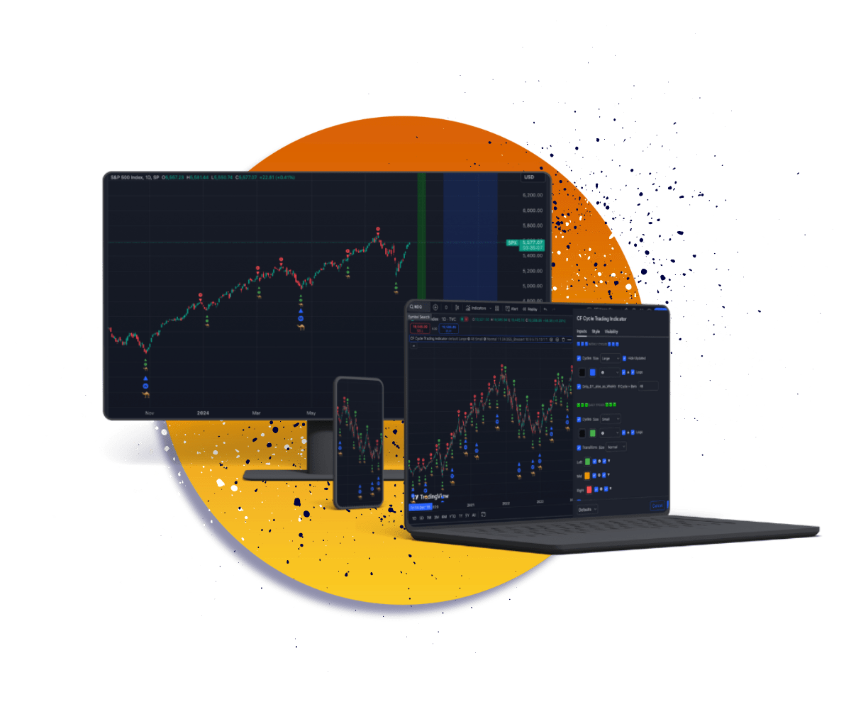 Our subscription plan includes full access to the CF Cycle Trading Indicator, a comprehensive interactive guidebook, 24/7 AI chatbot support, access to the Trading Community Hub, a dedicated customer support team, and continuous enhancements and updates. Plus, you get two months free when you choose the annual payment option!